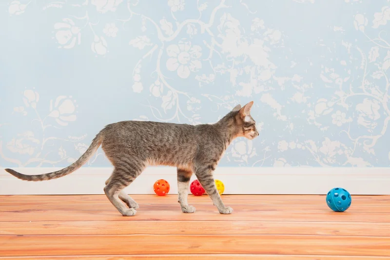 Постепенно увеличивайте расстояние между вами и кошкой, чтобы она принесла игрушку. Это поможет развить стойкость и надежность навыка.