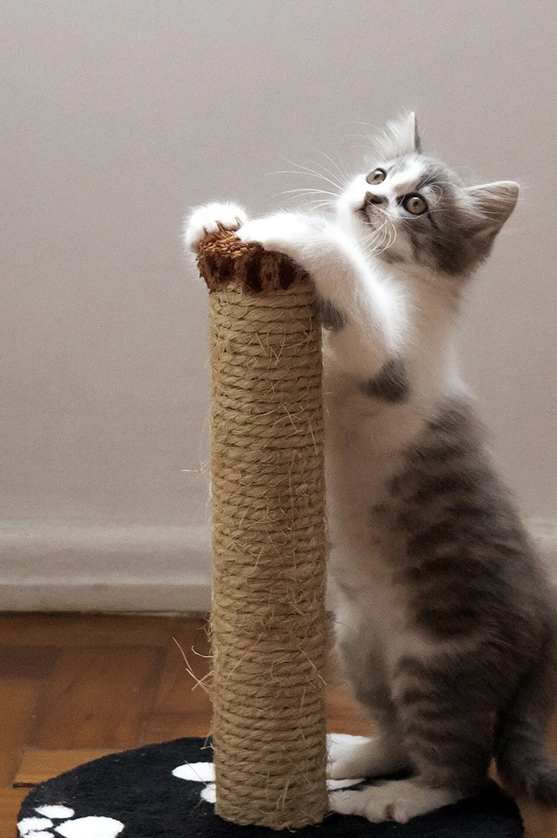 - Вертикальная когтеточка: Это отличный выбор для кошек, которые любят тянуться вверх при царапании. Такая когтеточка часто имеет форму столба или дерева.
