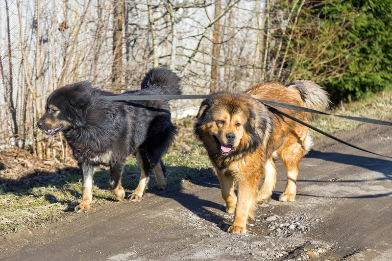 Тибетские мастифы на прогулке.
