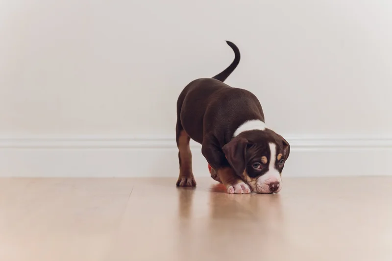 Щенок сходил в туалет на пол.
