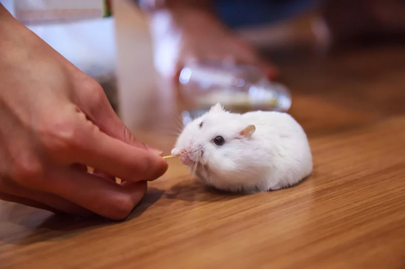 Команда "Встань": С помощью лакомства можно приучить хомяка вставать на задние лапки.