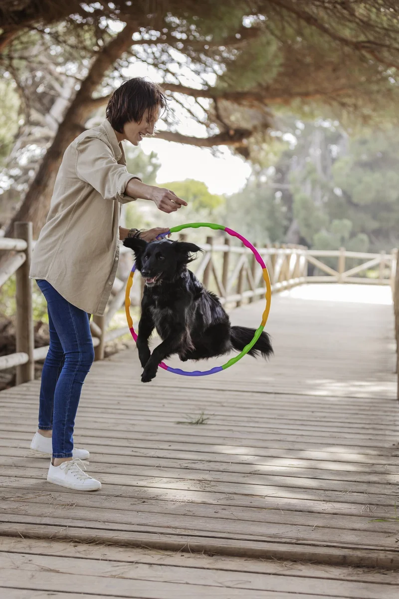 Собака прыгает через обруч. Источник фото: freepik.com