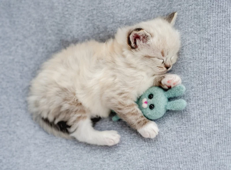 Котенок спит с игрушкой. Источник фото: freepik.com
