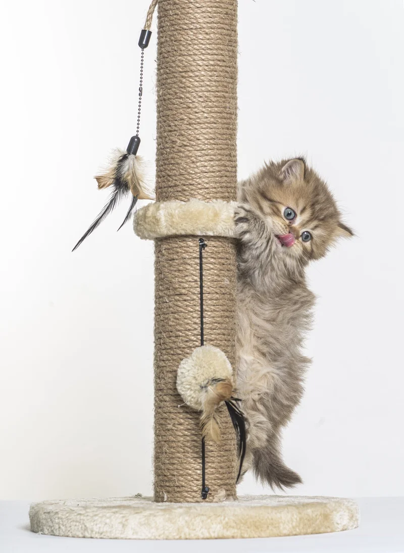 Котенок на когтеточке с игрушками. Источник фото: freepik.com